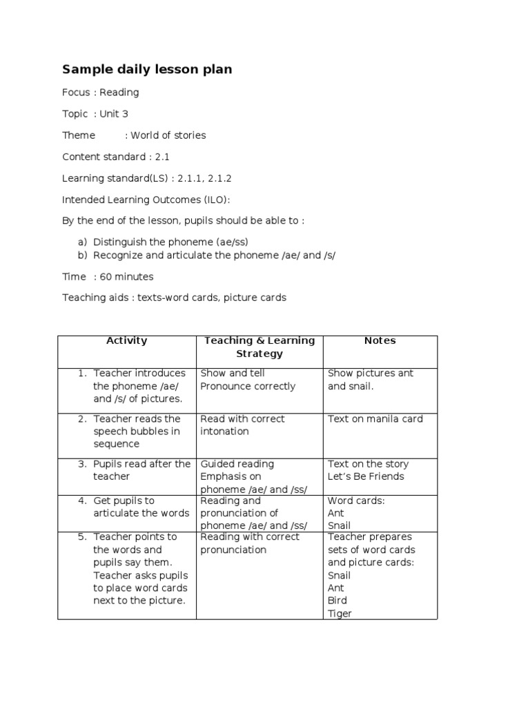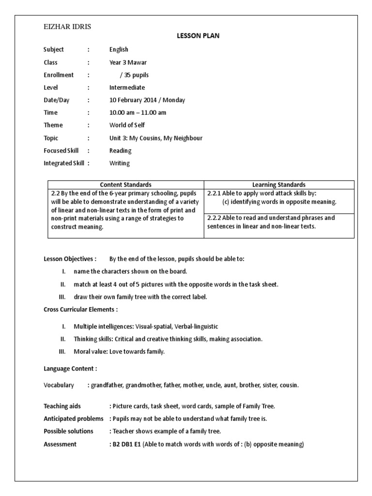 Related : English Lesson Plan Year 1 : Pupils will be able to pronounce words and speak confidently with the correct stress, rhythm and intonation.learning standards :.