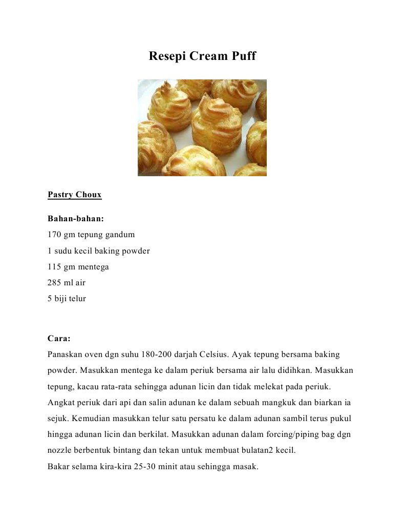 Utama resepi ais krim resepi aneka minuman. 0 ratings0% found this puff pastry bahan 120 gm butter 3/4 cawan air 1 1/3 cawan tepung ~ 170 gm di ayak 5 biji telur. Sebelum ini pernah disiarkan resepi kek cawan pelangi simpulan kasih. Tanpa menunggu lama, kami hadirkan untuk anda resepi cream puff nutella yang di kongsikan voleh. Insyaallah jika guna teknik yang betul cream puff akan naik gebu.
