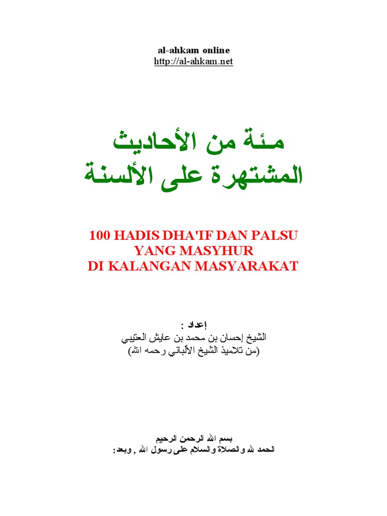 Telah berkata abu sa'iid , telah menjadi kebiasaan sebahagian orang yang melakukan sujud sesudah selesai sembahyang untuk berdoa. Berdusta keatas ku bukan seperti berdusta keatas orang lain. Ungkapan terakhir ini biasanya muncul dari kalangan pelajar hadis. Lomba hafalan hadits angkatan pertama tahun 1433 h. Bukan mudah untuk mengetahui perihal sanad ini tetapi kita boleh melihat pembukuan yang telah dilakukan oleh ulama hadis (zaman kita ini telah menjadi mudah kerana telah dihimpun dan dibukukan). Ada yang langsung menvonis hadis tersebut palsu. Realiti dan cabaran, oleh dr faisal bin ahmad shah. Tempat untuk latihan kelas 7 kurikulum 2013 smp himpunan. 7/22/2019 40 hadis palsu popular. Documents similar to himpunan hadis rasullulah saw yang agung pdf.pdf. Here you can download file himpunan hadis pendek. Penyebaran hadis palsu dalam media massa dan media sosial: Yazid, himpunan hadis lemah dan palsu, surabaya: